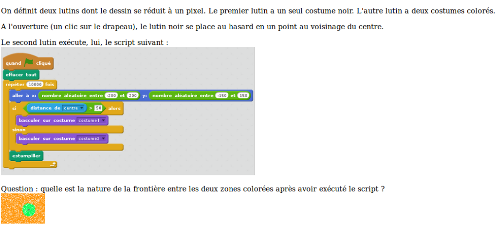 Le script sur le cercle permet de découvrir quelques notions scratch, ce second script oblige à retravailler les notions sur un script d'un même niveau de difficulté.